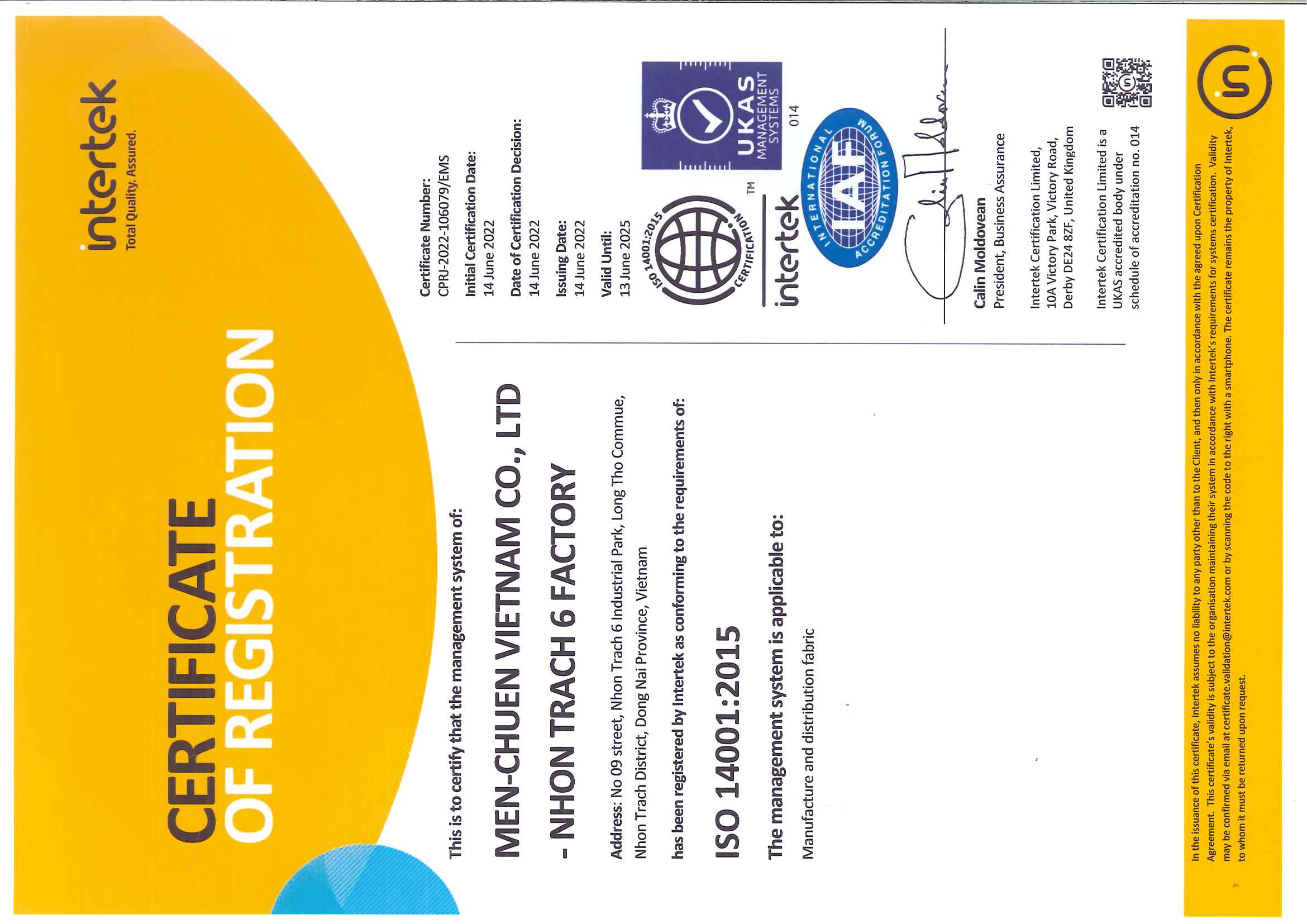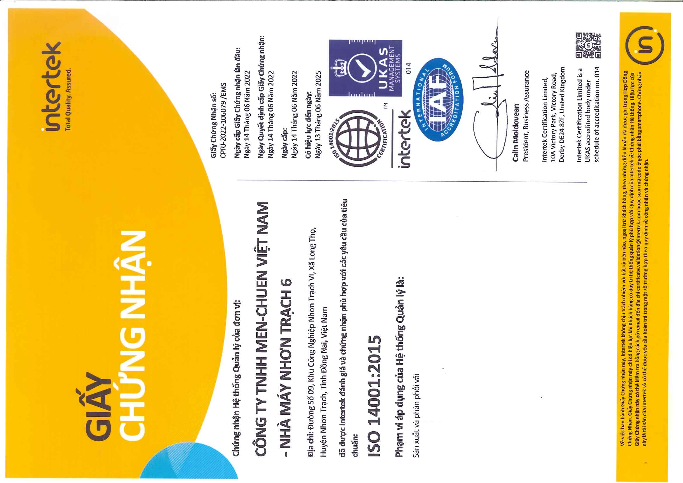 With over several months hard work and dedication, Men-Chuen Nhon Trach 6 Factory established an extensive ISO management system, with the goal of reducing environmental impact during manufacturing processes in all aspects and protect our environment!