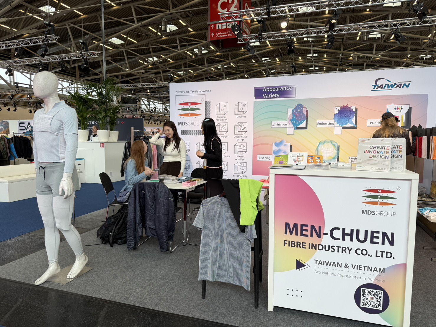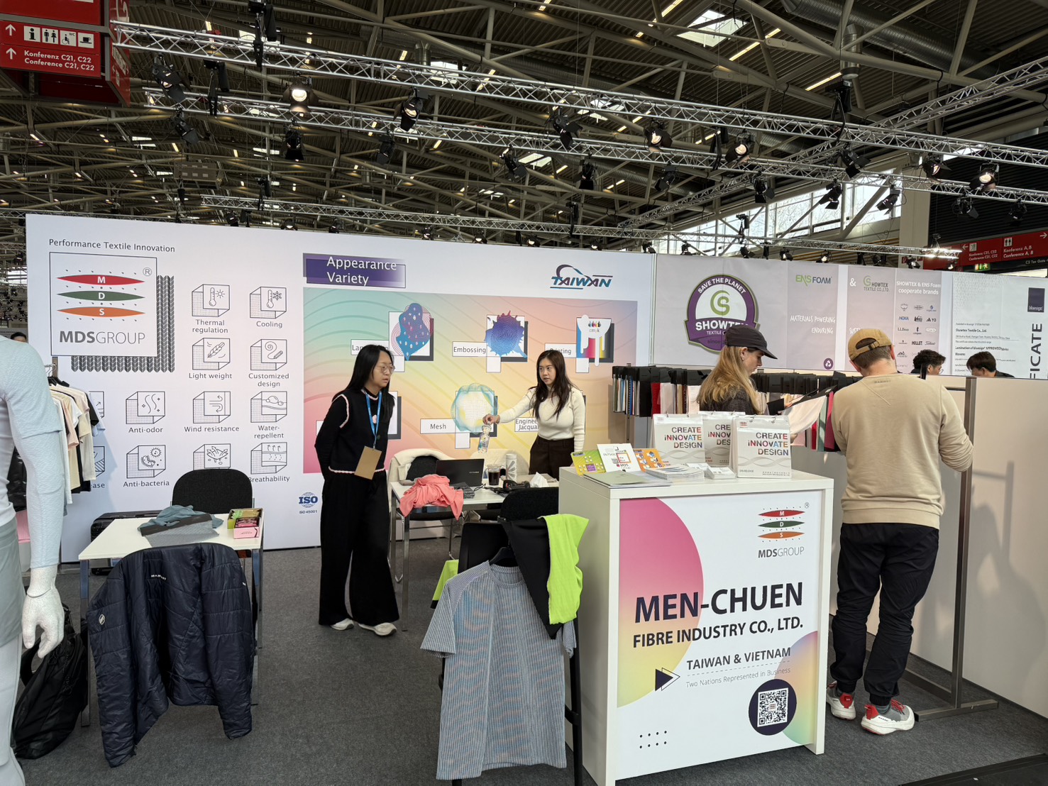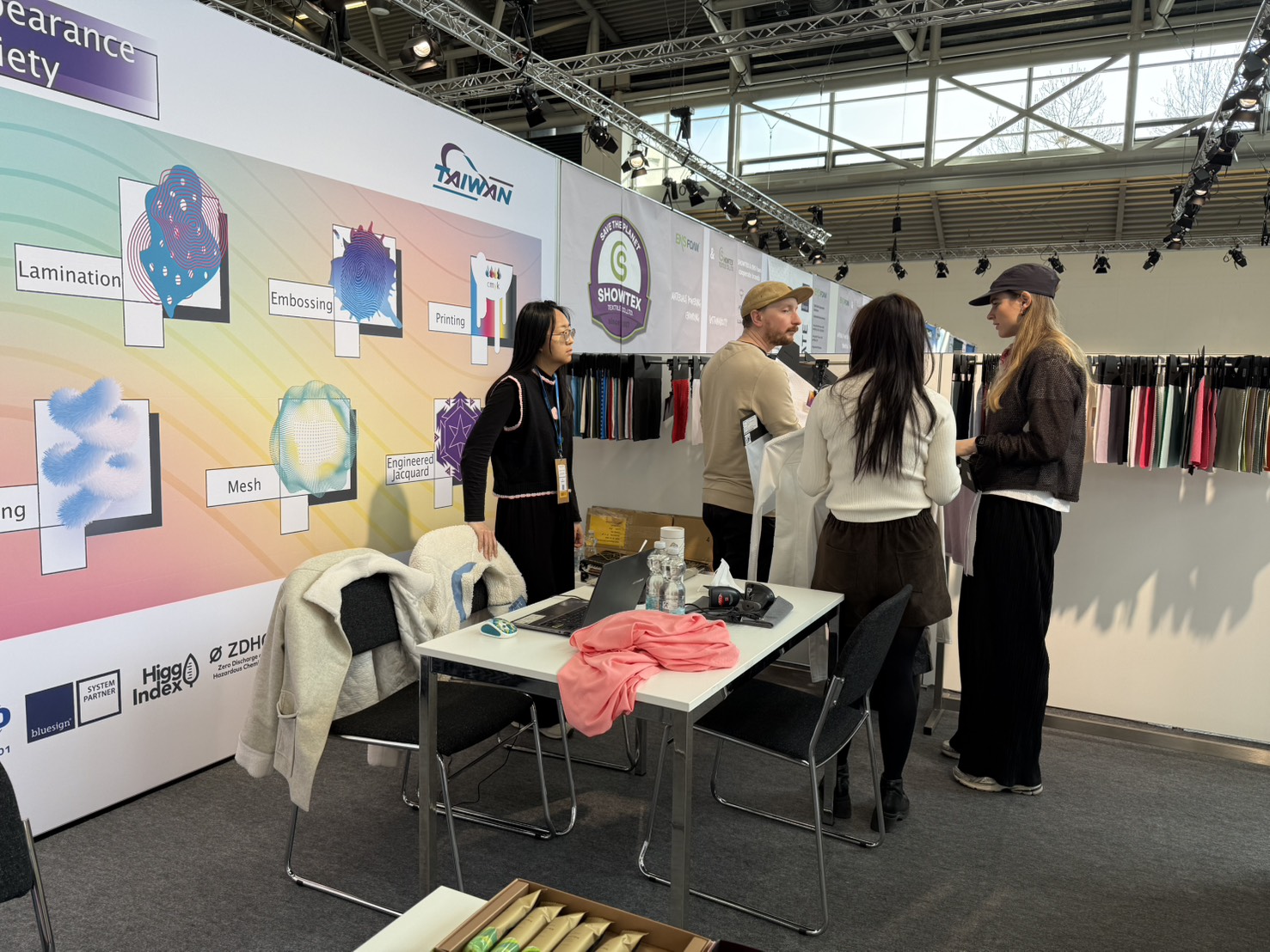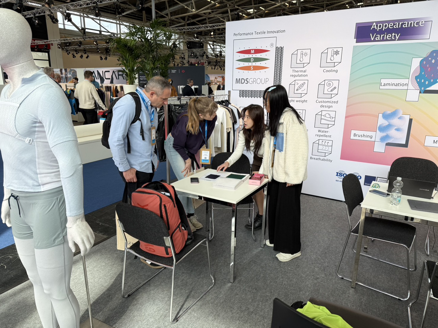 We presented the complex functionalities and structural design of light-weight micro-channel fabrics during Performance Day Munich exhibition and discussed the utilization of the fabric during sportswear design, to provide a comfortable balance between fast changing ambience temperatures, empowering improvement and advancement in everyday life and physical activities.