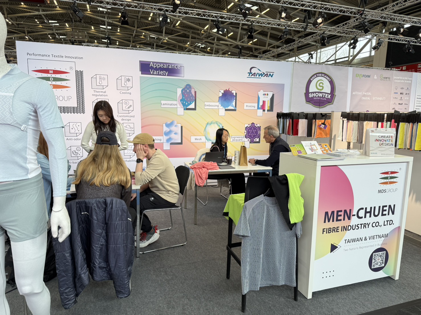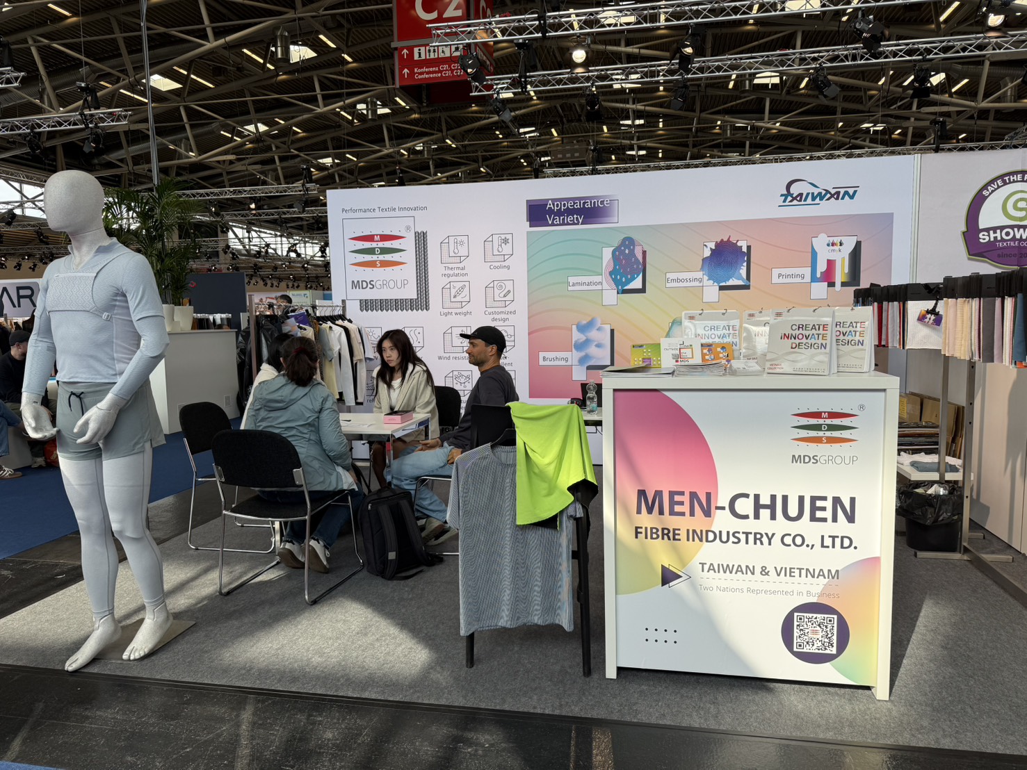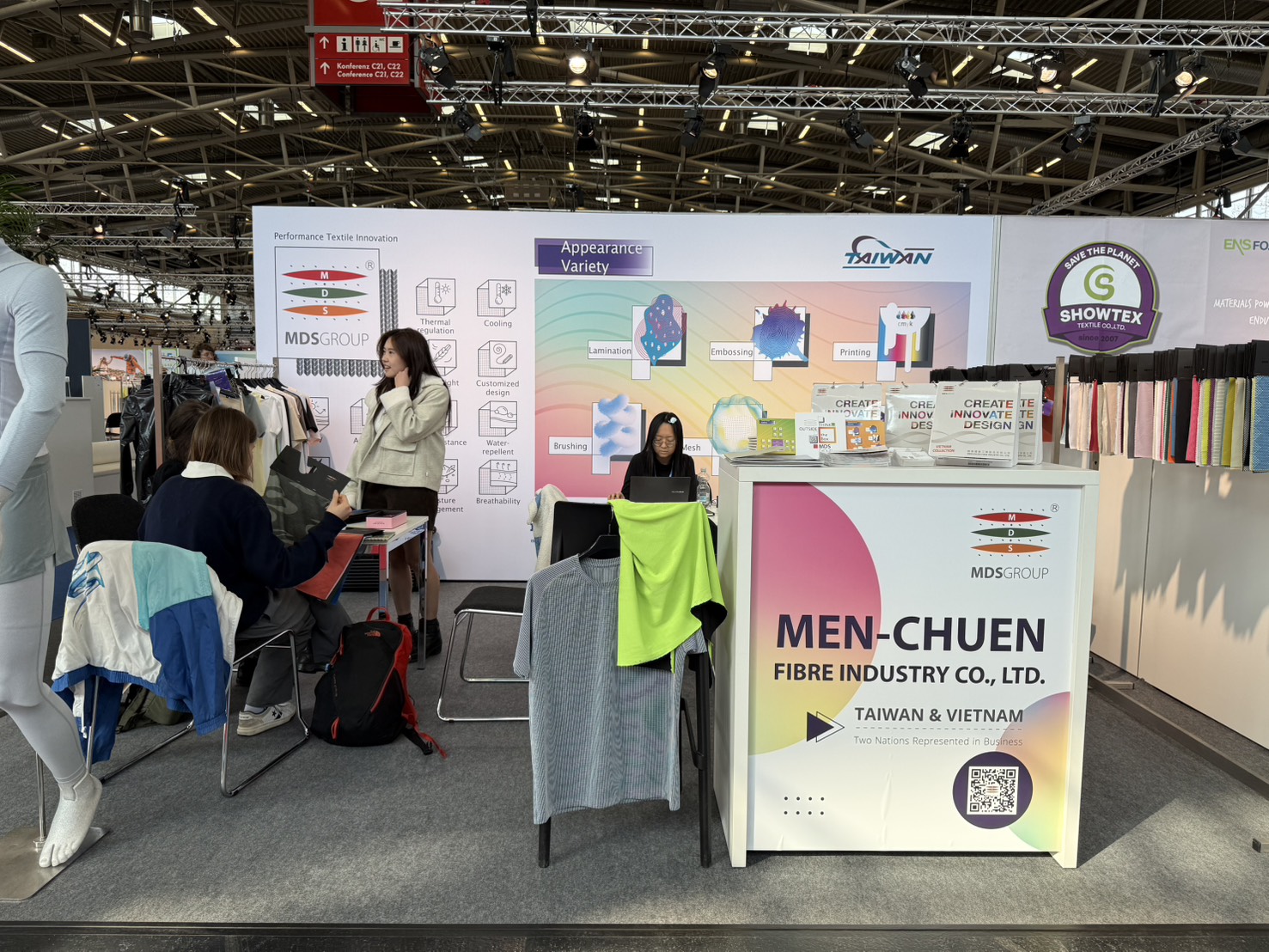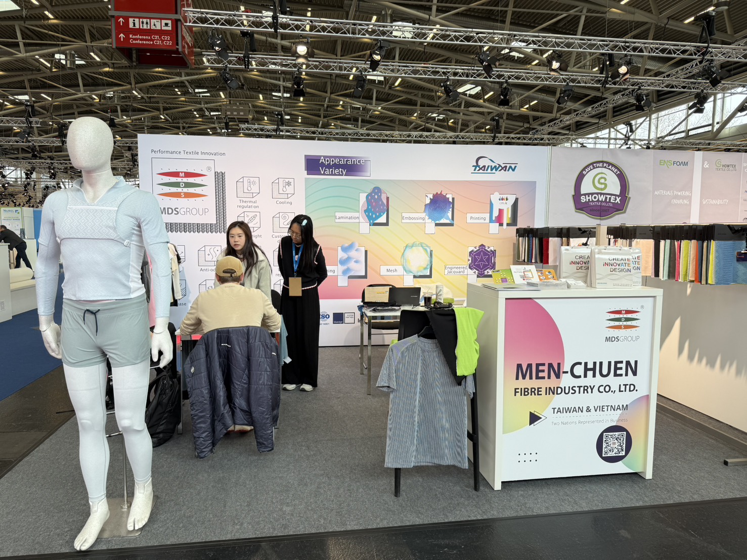 We presented the complex functionalities and structural design of light-weight micro-channel fabrics during Performance Day Munich exhibition and discussed the utilization of the fabric during sportswear design, to provide a comfortable balance between fast changing ambience temperatures, empowering improvement and advancement in everyday life and physical activities.
