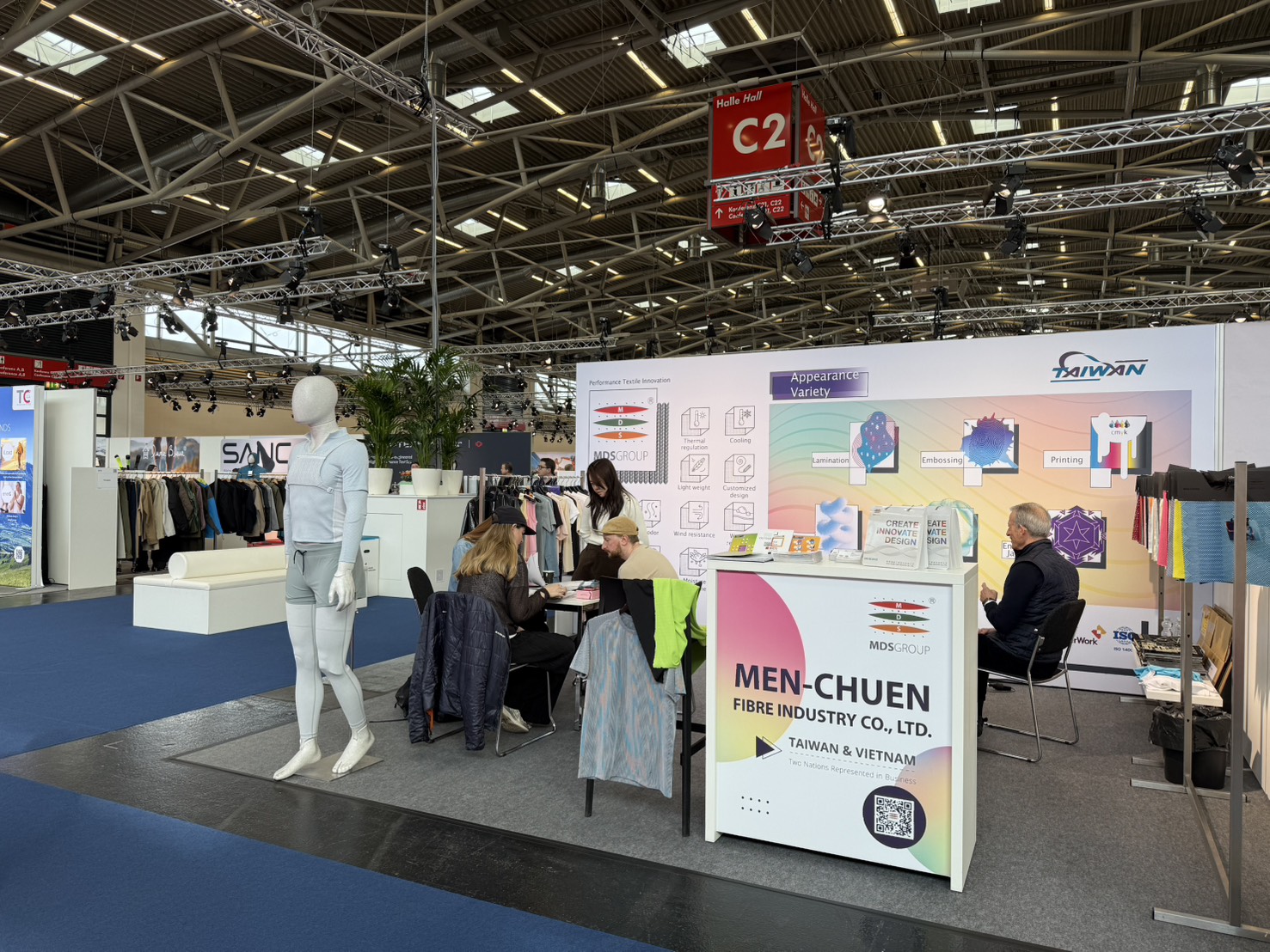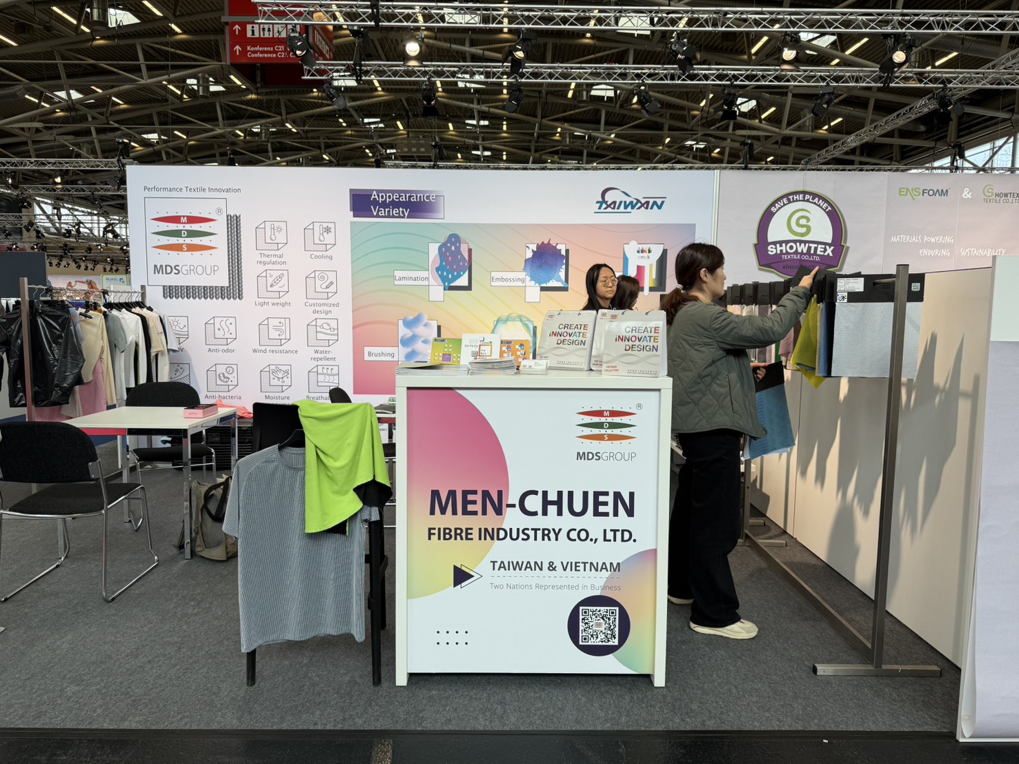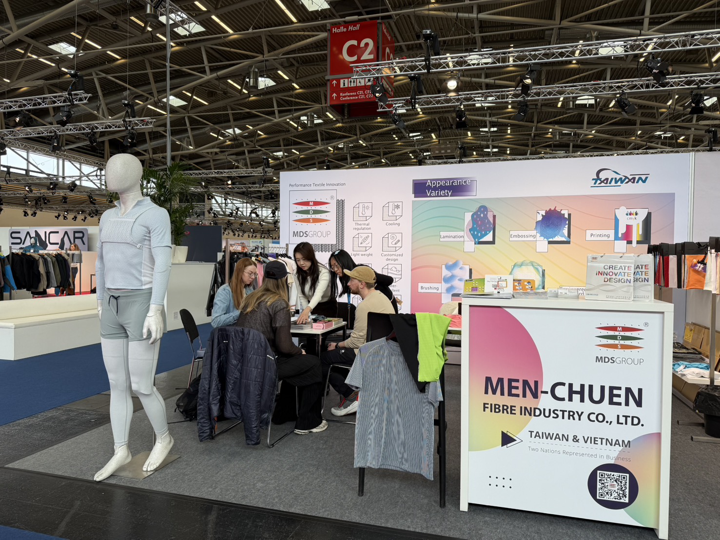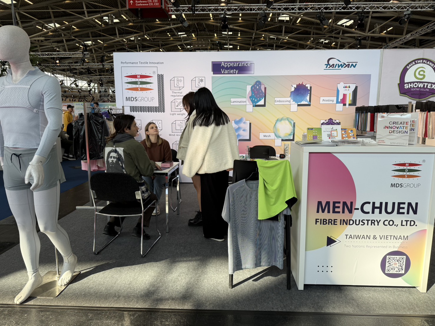 We presented the complex functionalities and structural design of light-weight micro-channel fabrics during Performance Day Munich exhibition and discussed the utilization of the fabric during sportswear design, to provide a comfortable balance between fast changing ambience temperatures, empowering improvement and advancement in everyday life and physical activities.