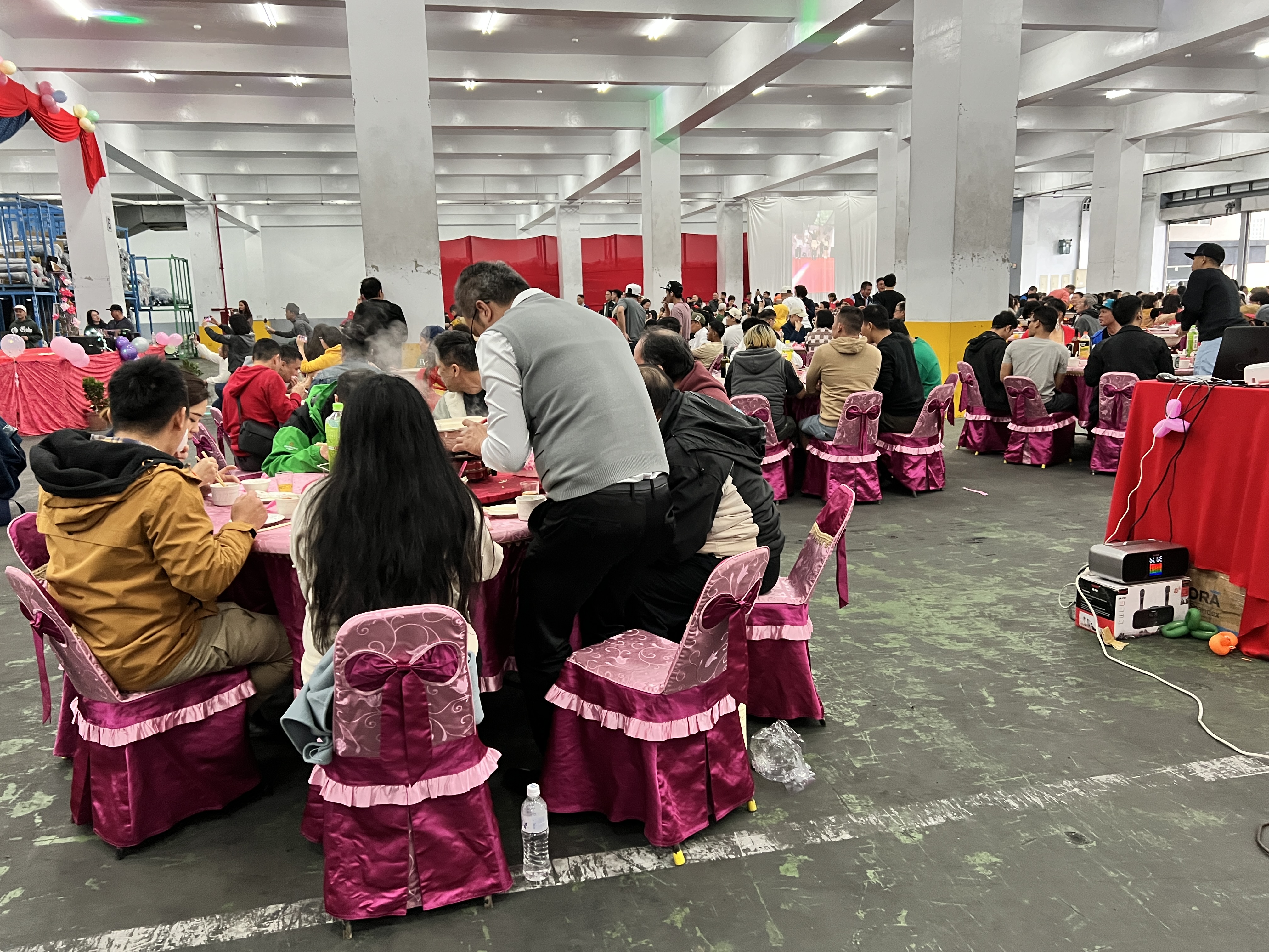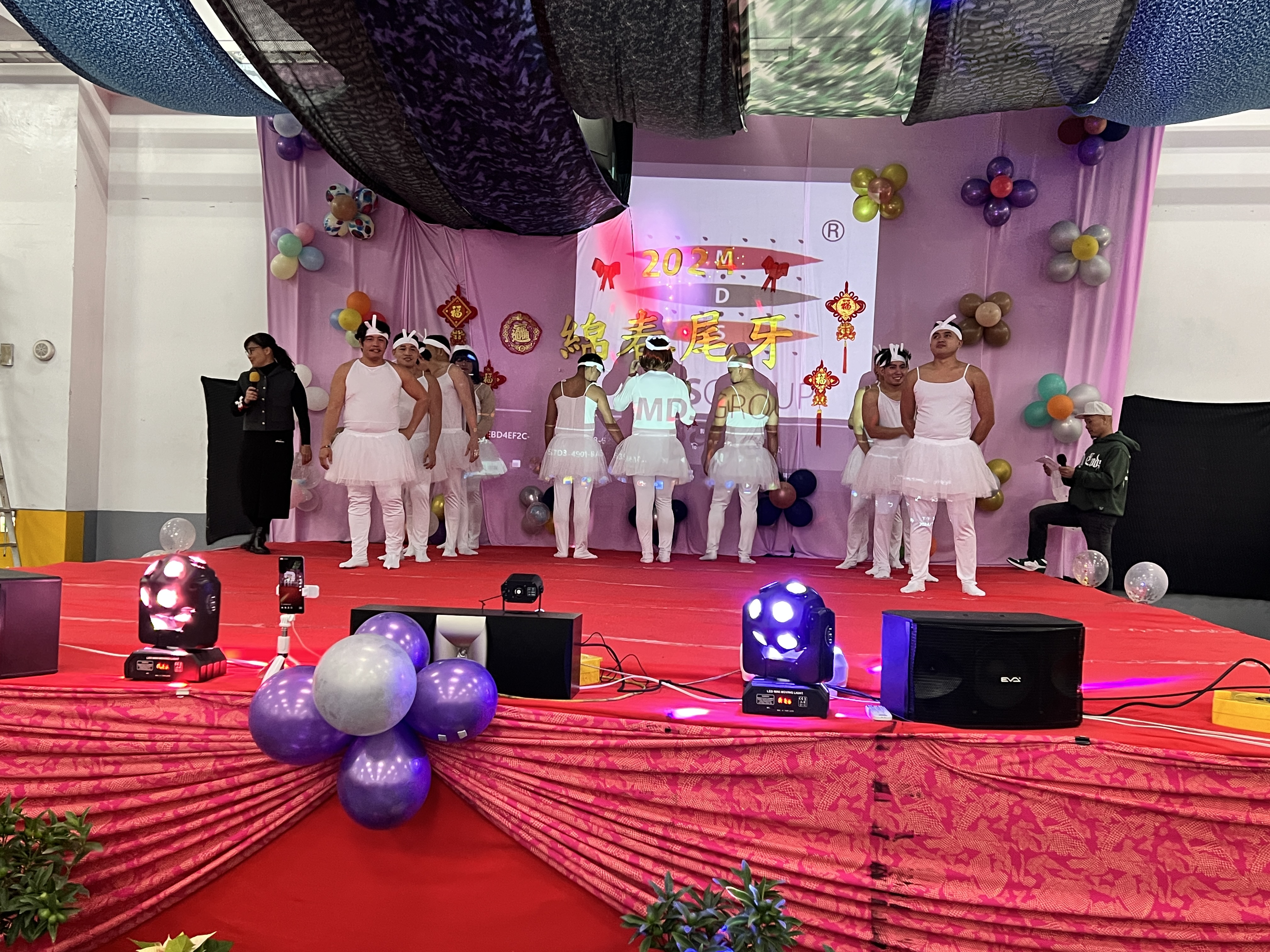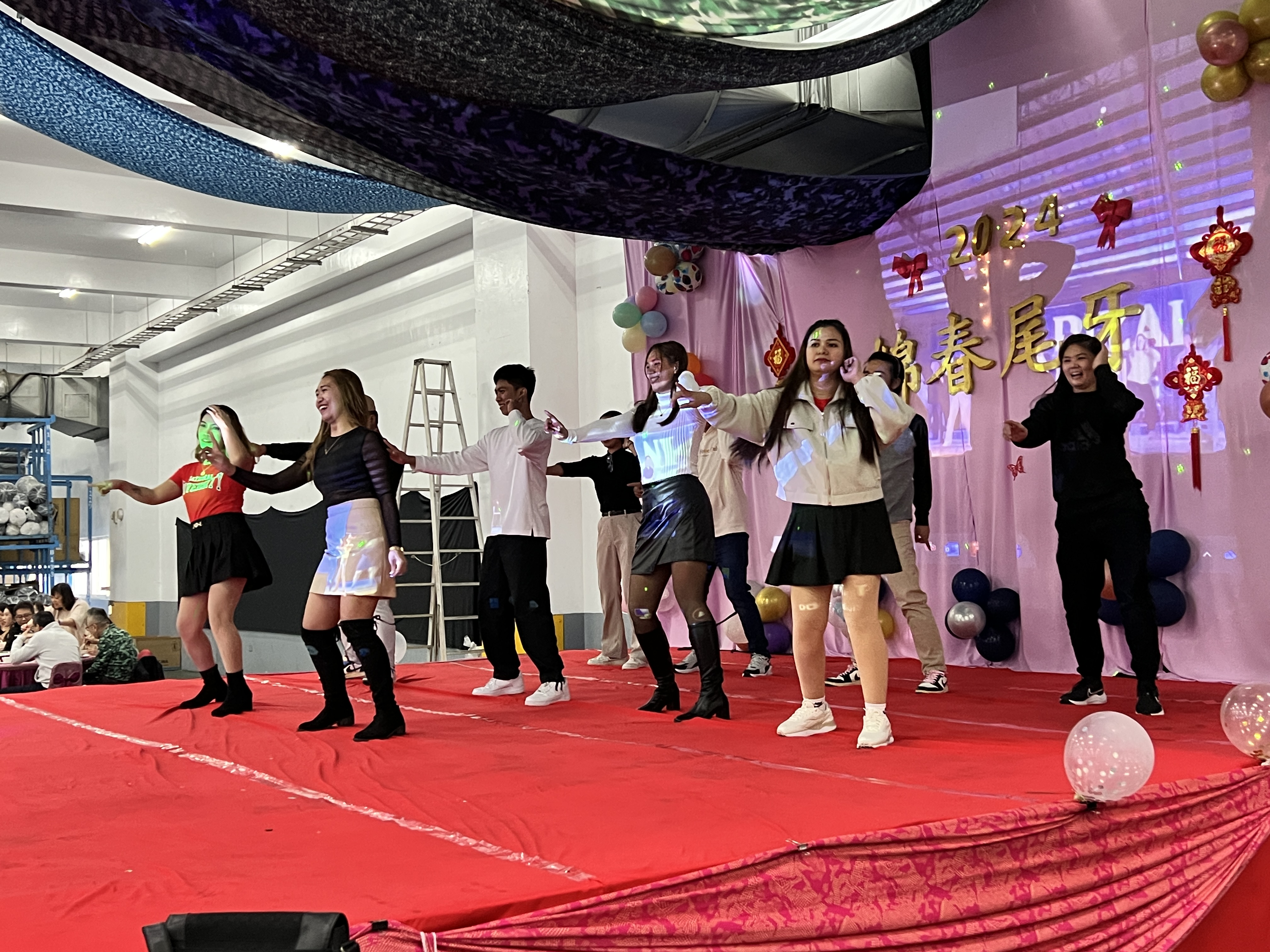 The banquet seating was arranged with employees in mind so that everyone can clearly see the main stage. The banquet and showtime starts with videos of managers from each factory site leading staffs dancing “APT”, followed by group dance and singing, all performed by employees and moderated by employee.