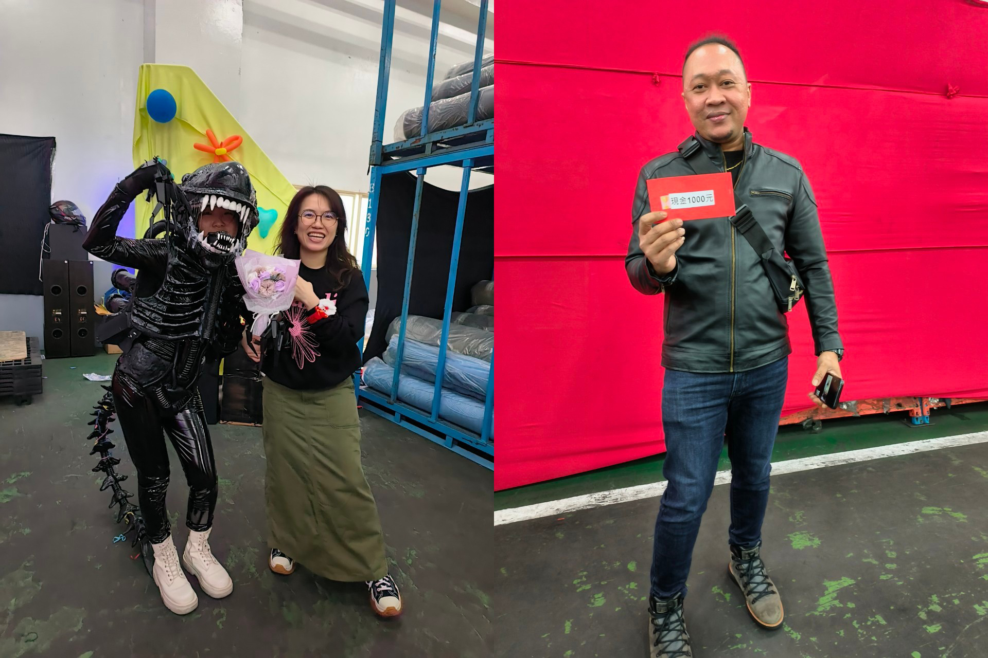 “Employees First”. To show appreciation to employees’ hard work over the year, Men-Chuen President, Mr. Ching-Ho Chung hosted a year-end party at Logistic Center in Luzhu. The exciting day opened with loud cheering for the fun competitions and games.