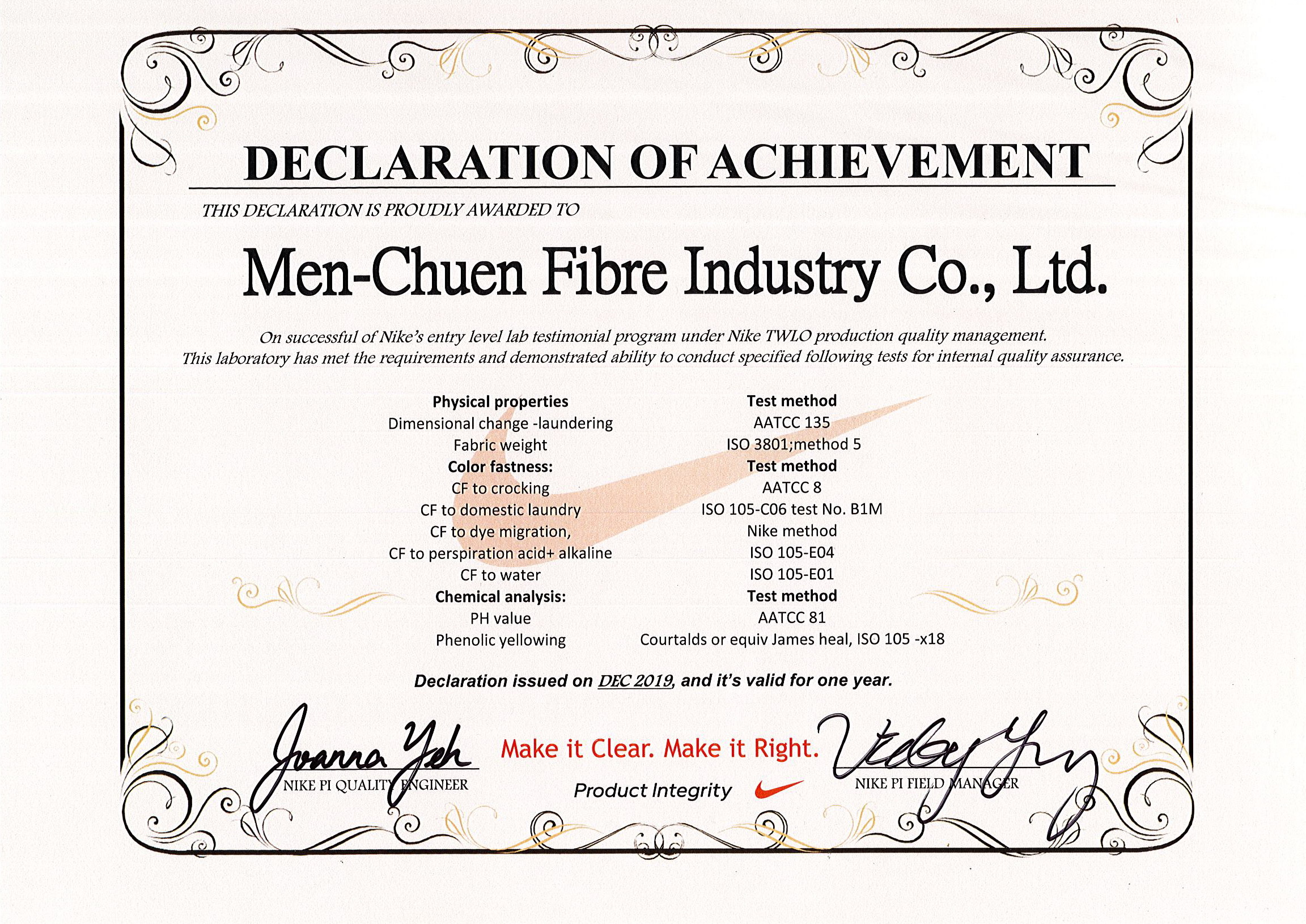 今年『綿春蘆竹廠』檢驗室順利通過Nike的查驗,是對綿春檢驗室專業團隊的肯定,綿春會持續往更高標準邁進,為所有消費者把關良好品質!