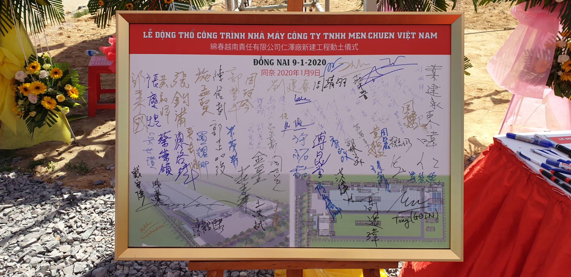 經過長久的審慎評估,決定在越南更進一步積極擴充產能,在2019年6月順利於仁澤六工業區尋覓到 100,000 m2的土地,經過半年以來的規劃討論,預計從2020年2月開始正式施工,計畫於今年第三季完成廠房建設,並於第四季開始試運轉,期望在2021年開拓新的氣象與局面!